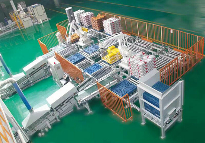 包裝完畢后,包裝物經(jīng)推袋裝置推送至輸送系統(tǒng)。