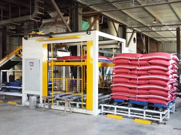 該包裝碼垛系統(tǒng)由自動(dòng)稱(chēng)重喂料系統(tǒng)、半自動(dòng)包裝移袋機(jī)、封口裝置、輸送系統(tǒng)、倒袋輸送機(jī),整形機(jī)、坐標(biāo)機(jī)器人、托盤(pán)庫(kù),PLC控制系統(tǒng)等設(shè)備組成,可以完成顆粒料,粉料及普通物料的定量包裝碼垛生產(chǎn)。該生產(chǎn)線適用于編織袋、紙塑復(fù)合包裝袋、全紙包裝袋、全塑包裝袋等不同材質(zhì)敞口包裝袋。服務(wù)的行業(yè)涵蓋了食品、工程塑料,化肥,飼料,化工、建材、顏料、礦產(chǎn)等定量包裝、自動(dòng)碼垛領(lǐng)域,該生產(chǎn)線包裝精度高,一般可達(dá)+/-0.2%;無(wú)粉塵污染;自動(dòng)化程度高,整條包裝碼垛線僅需要一個(gè)工人負(fù)責(zé)人工上袋,其它工序均為自動(dòng)化完成; 碼垛速度可達(dá)200-600包/小時(shí),能滿足大部分用戶的產(chǎn)能需求;投資額低,僅需全自動(dòng)包裝碼垛線的三分之一左右,是目前性價(jià)比**的自動(dòng)化包裝碼垛方案。